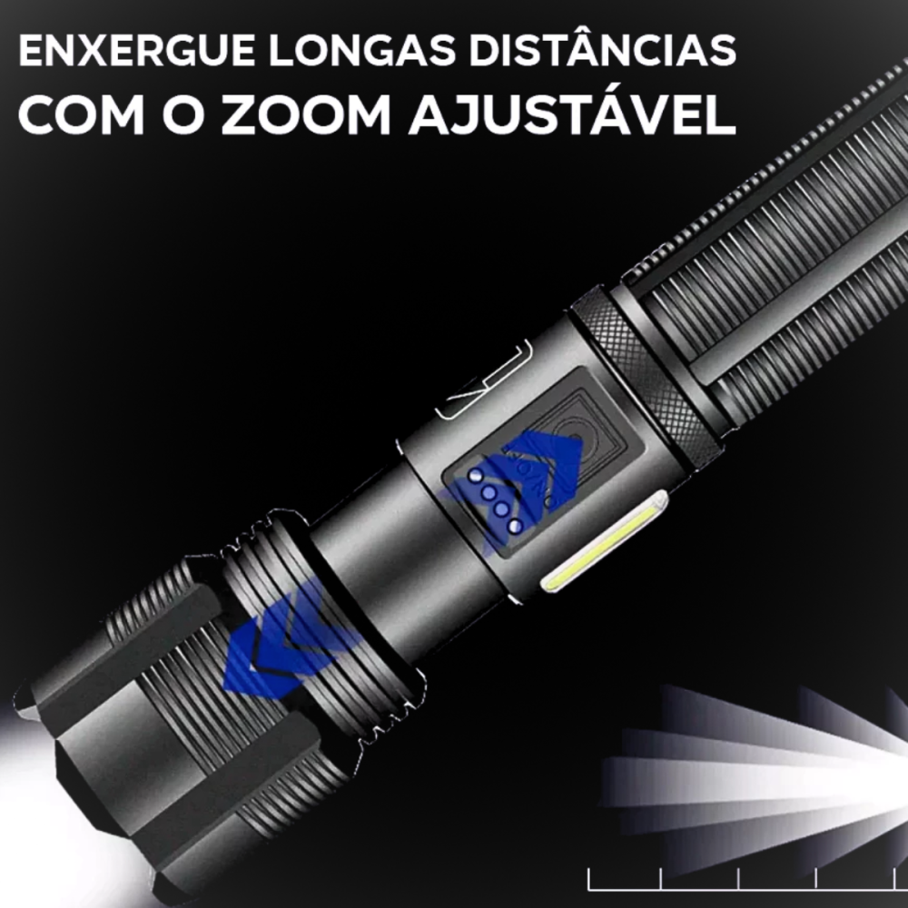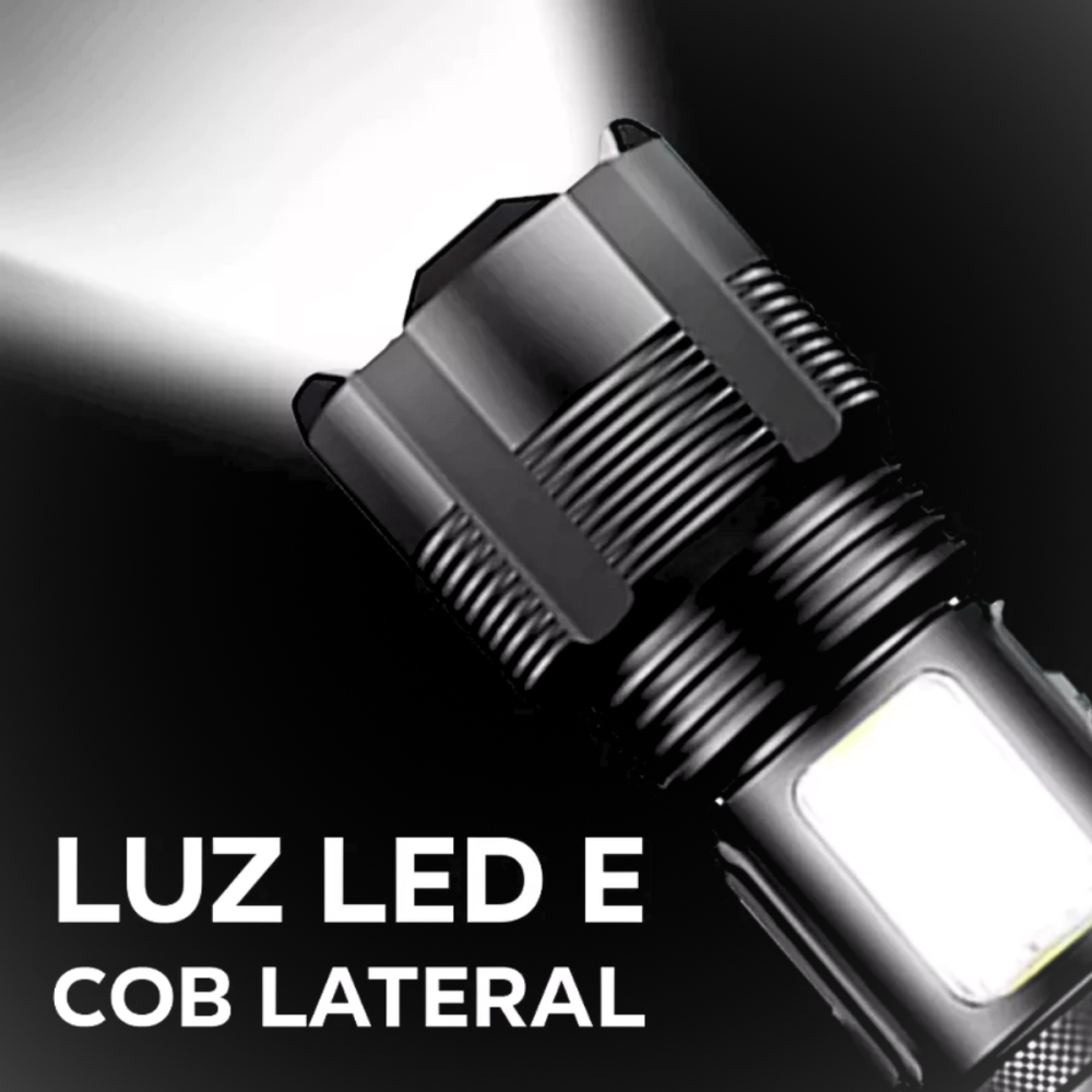 Lanterna Tática Portátil Bateria Recarregável Luz LED Lateral COB