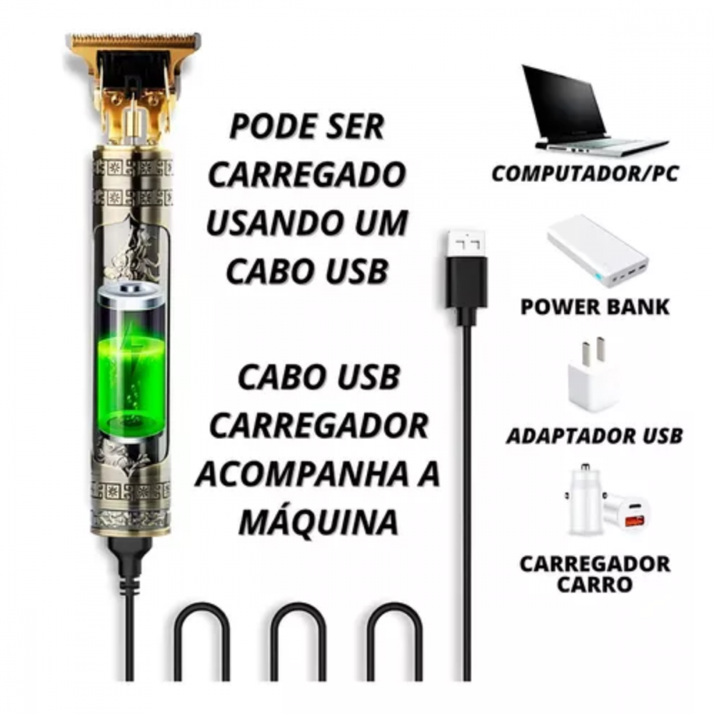 Máquina de Barbear e Cortar Cabelo Recarregável Sem Fio Dragão T-Blade