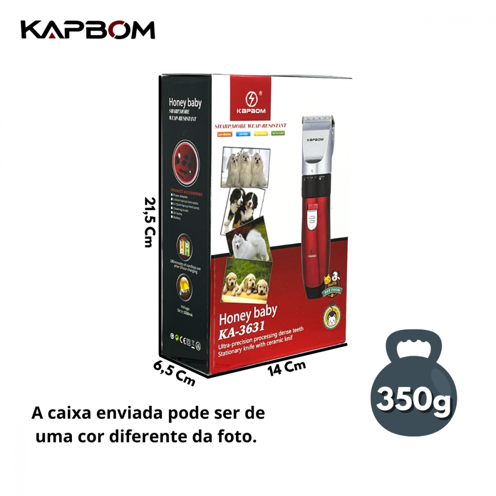 Máquina de Tosa Aparador de Pelos Pets Cachorro Gato Silencioso Recarregável Bivolt Kapbom KA-3631