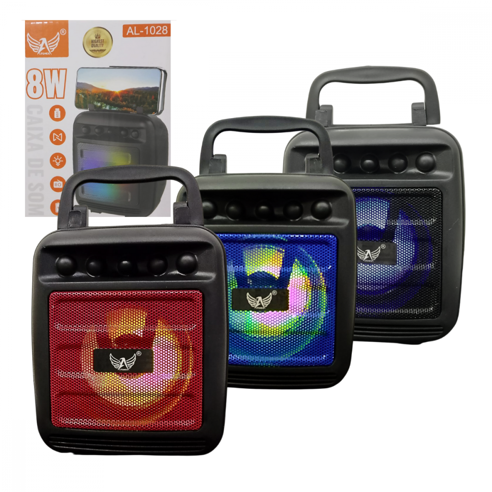 Mini Caixa de Som LED RGB 8W Bluetooth Portátil com Suporte Celular Altomex AL-1028 / AL-1029