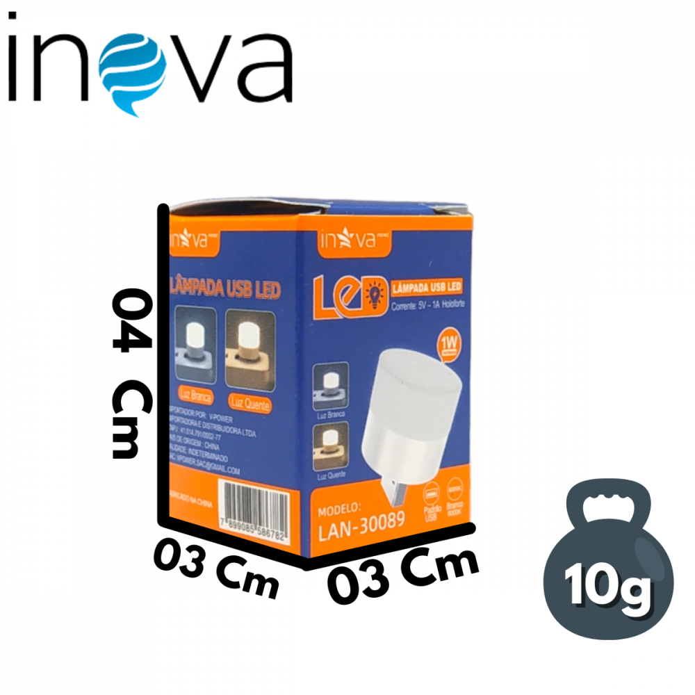 Mini Lâmpada Led USB 1W Luz Branca e Quente INOVA LAN-30089