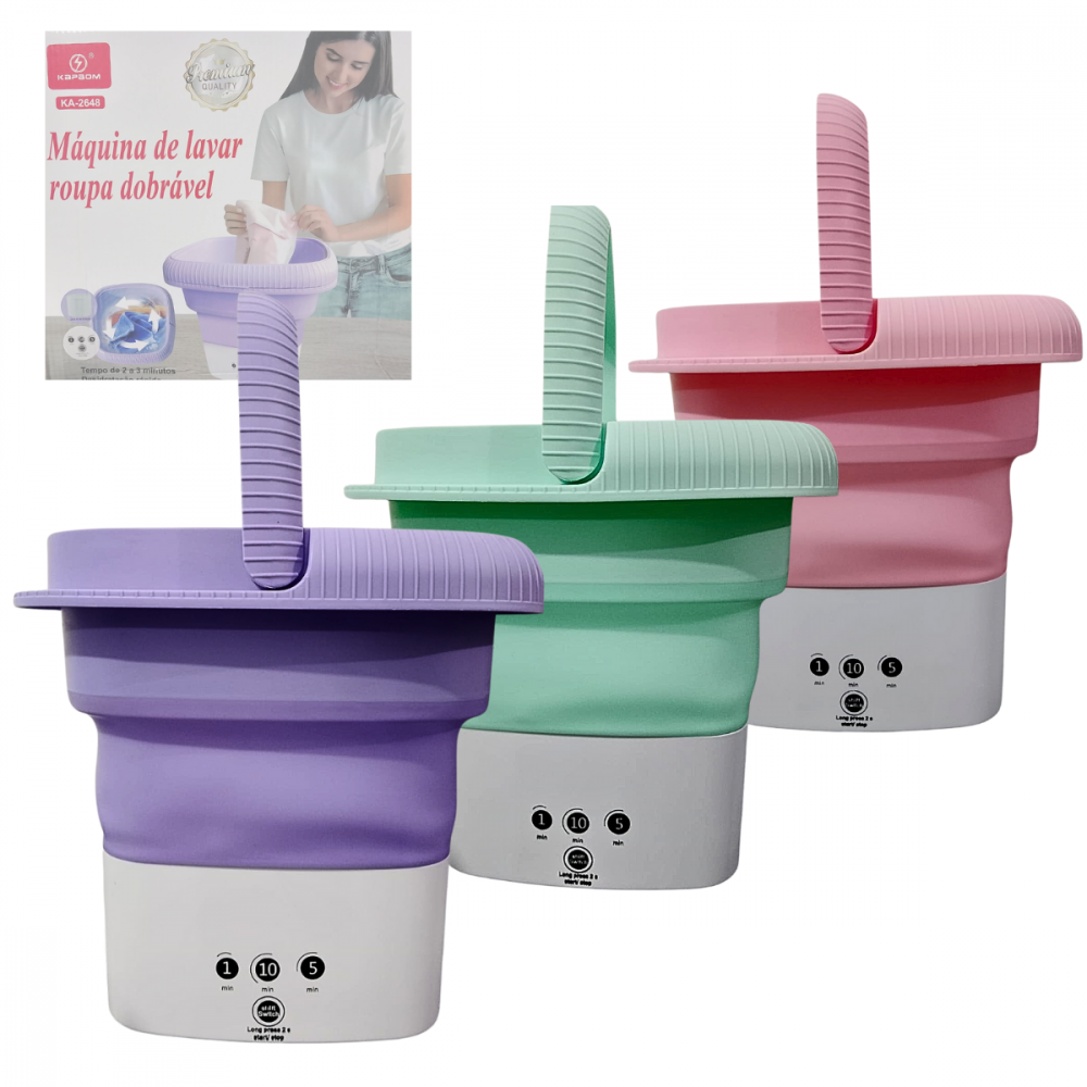 Mini Maquina de Lavar Roupas Dobrável com ALÇA 8 Litros Bivolt Kapbom KA-2648