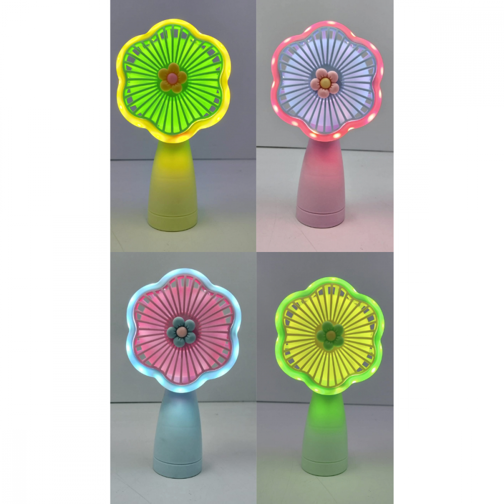 Mini Ventilador Portátil Recarregável de Mesa Luz LED Flowers Hmaston HQ66-13A