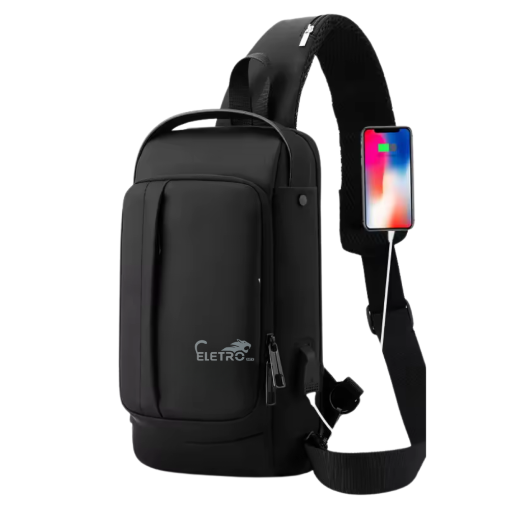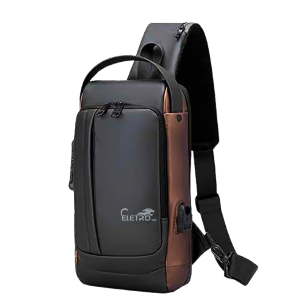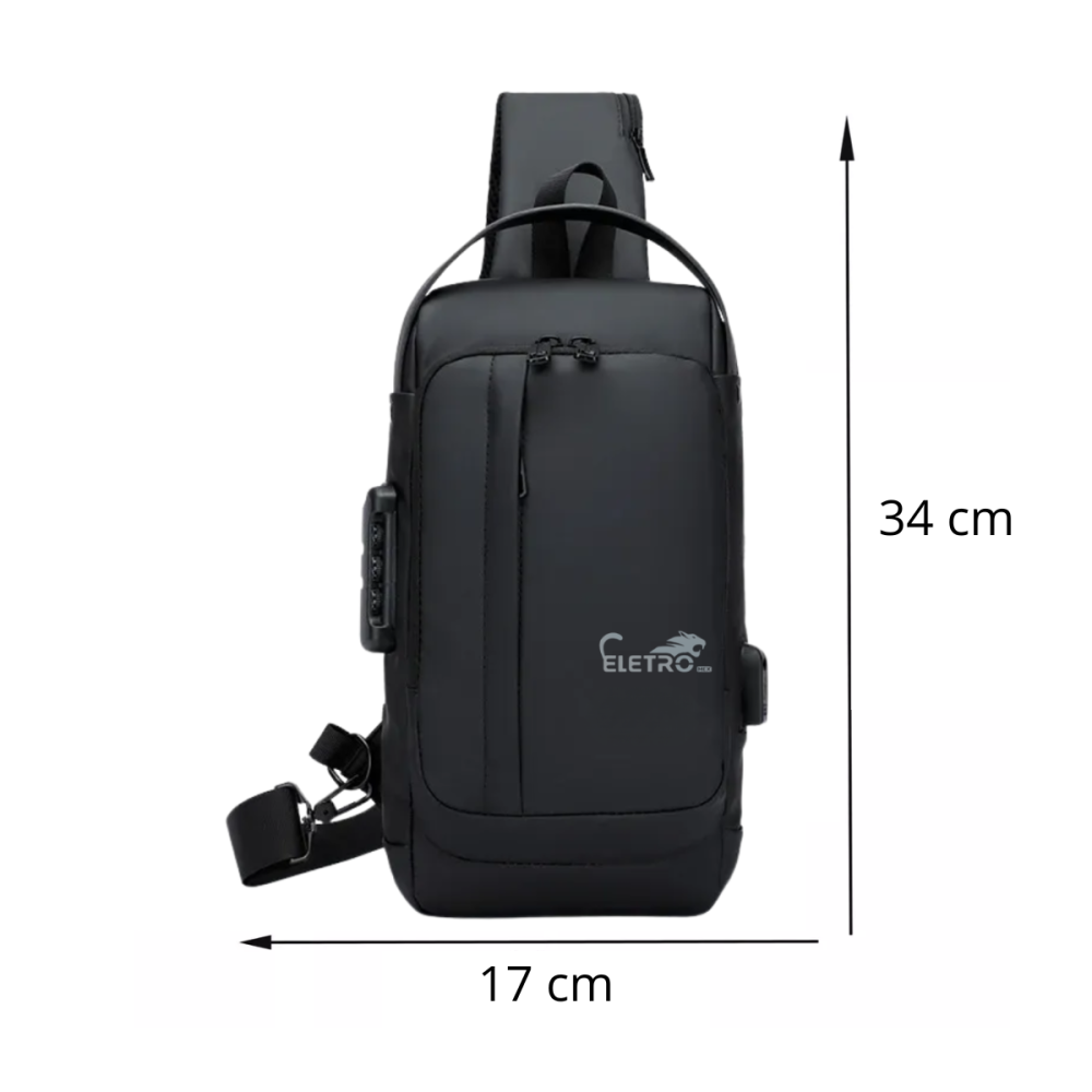 Mochila de Ombro Transversal Portátil Viagens com Trava Antifurto Eletromex EL-3802