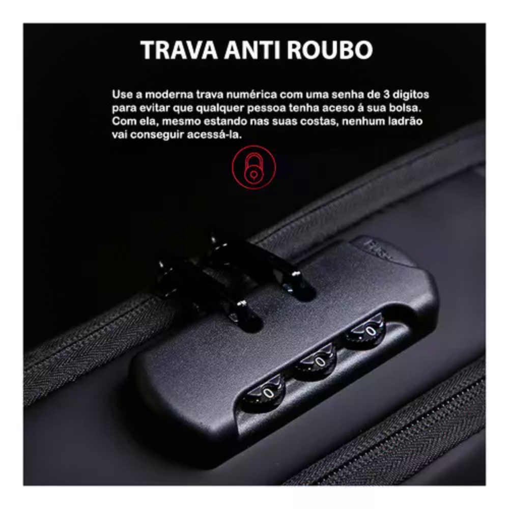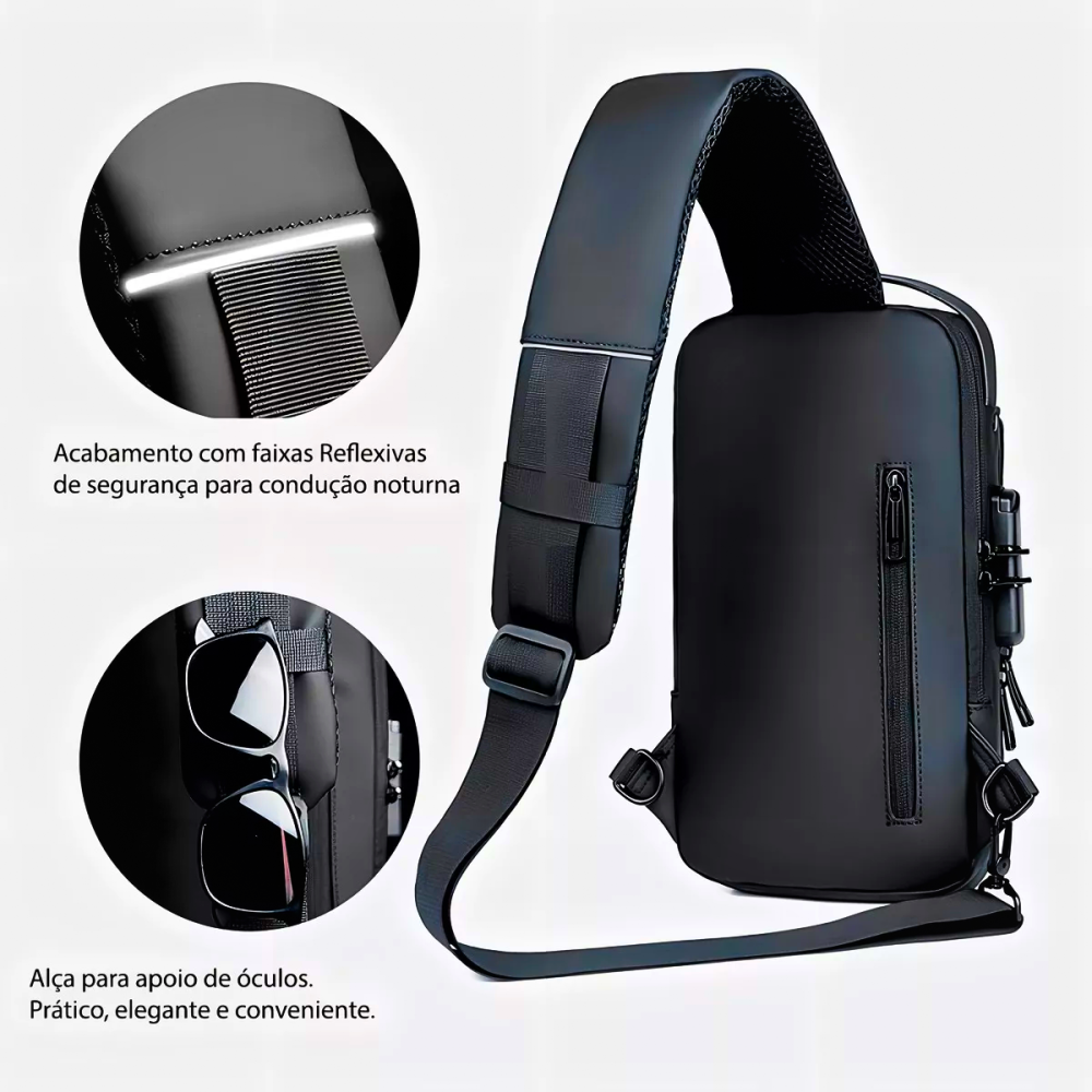 Mochila de Ombro Transversal Portátil Viagens com Trava Antifurto