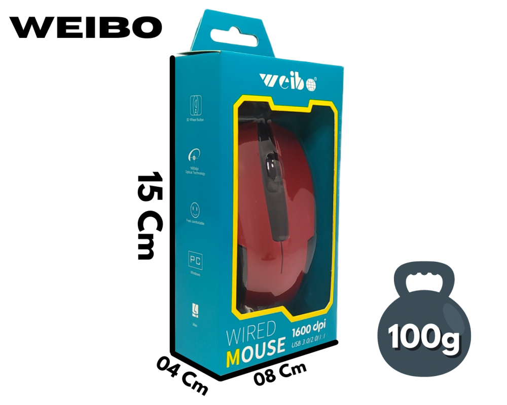 Mouse Óptico com Fio para PC / Notebook 1800dpi Inova Weibo WB-024