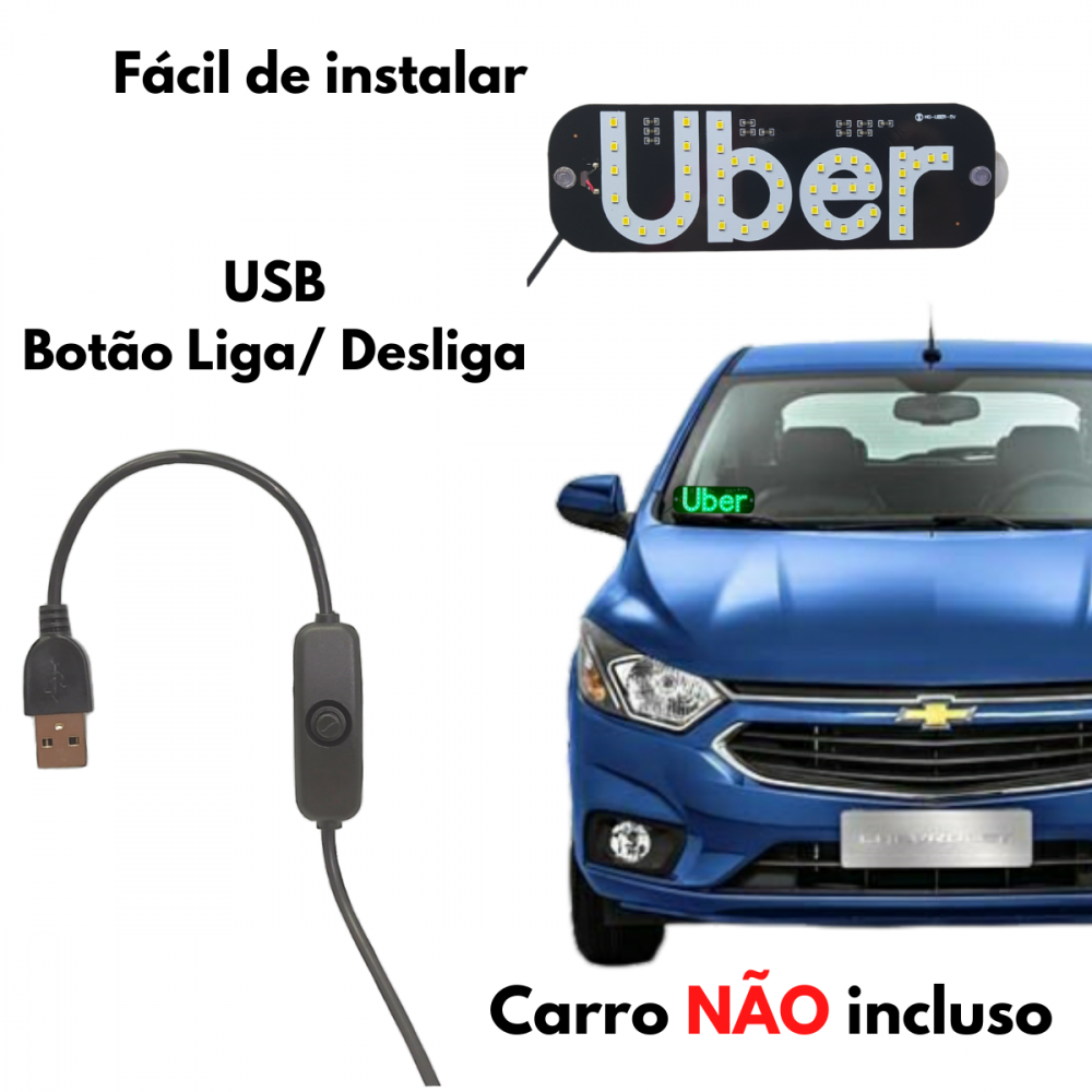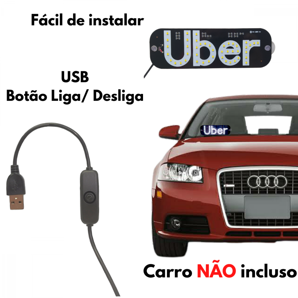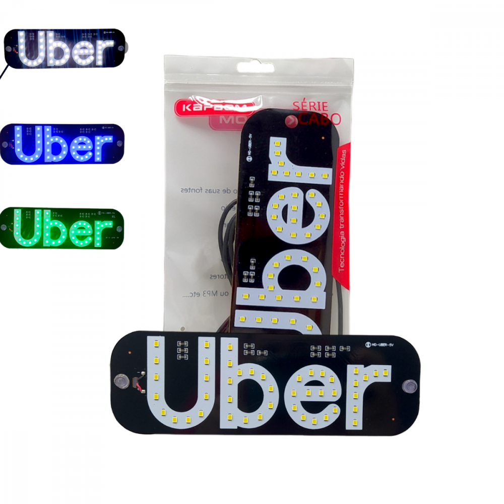 Placa Painel Letreiro Luminoso LED USB Uber Vidro Parabrisa KA-1129 / AL-1138