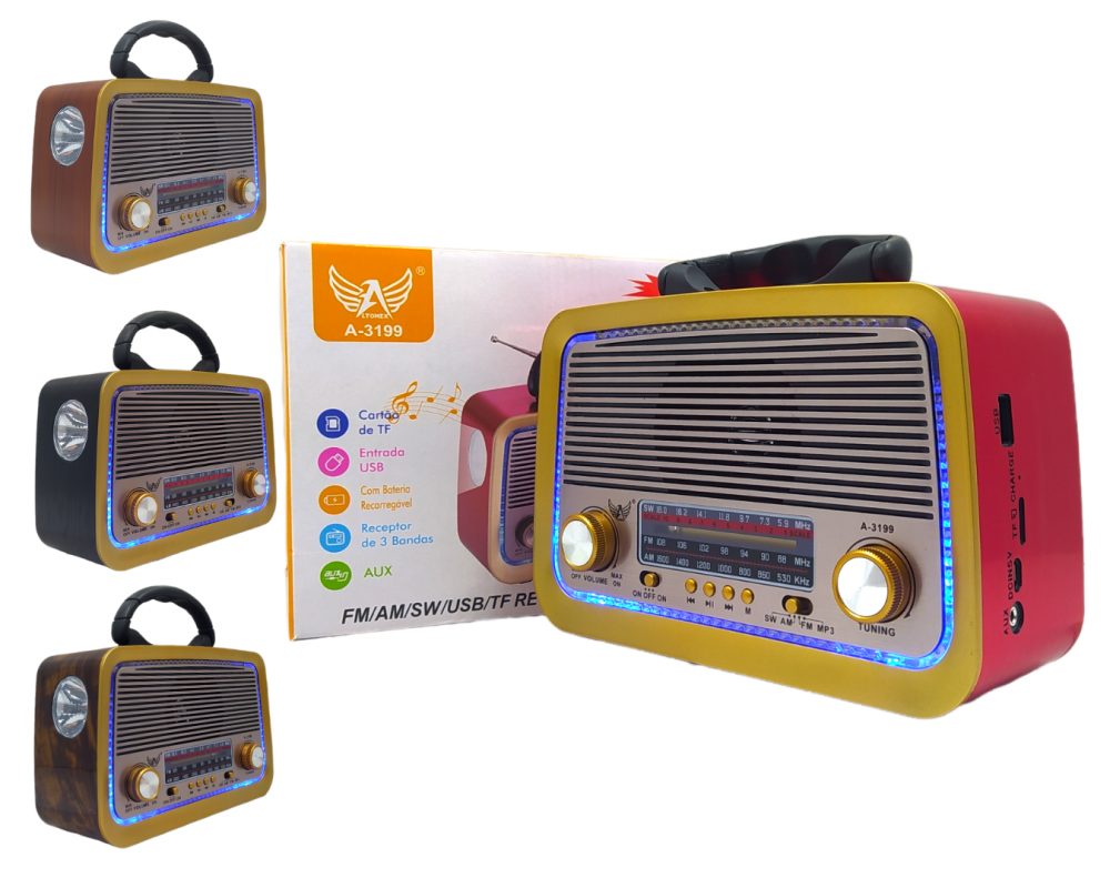 Rádio Retro Portátil Bluetooth Altomex AD-3199 (***DISPONÍVEL SOMENTE PRETO E VERMELHO)