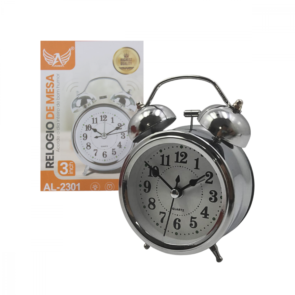 Relógio Retrô Pequeno Analógico de Mesa PRATA Altomex AL-2301