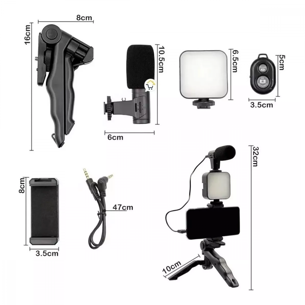 Suporte para Celular com Tripé Luz LED para Streaming Podcast / Self com Microfone