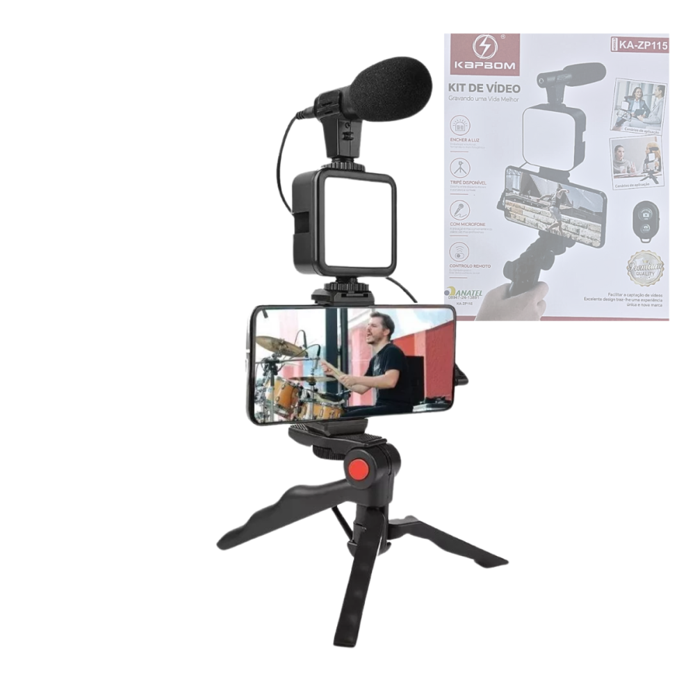 Suporte para Celular com Tripé Luz LED para Streaming Podcast Self com Microfone Kapbom KA-5673 / KA-ZP115