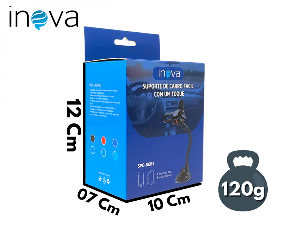 Suporte Veicular Universal para Celular Braço Articulável e Ventosa de Fixação INOVA SPO-8683