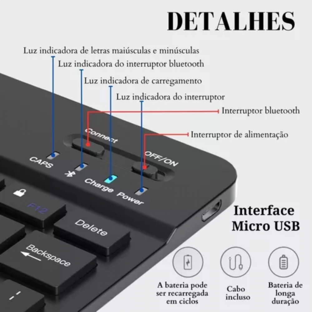 Compatível com Windowns, Android, IOS, Tablet mobile, Pc, TV com BT (Bluetooth)