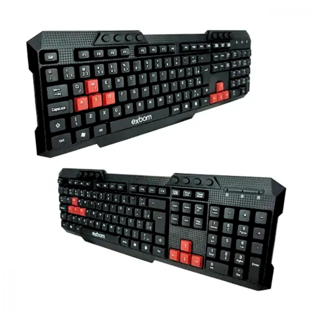 Teclado Multimídia Semi Mecânico Tecla Game Plug & Play ABNT2 Exbom BK-144M