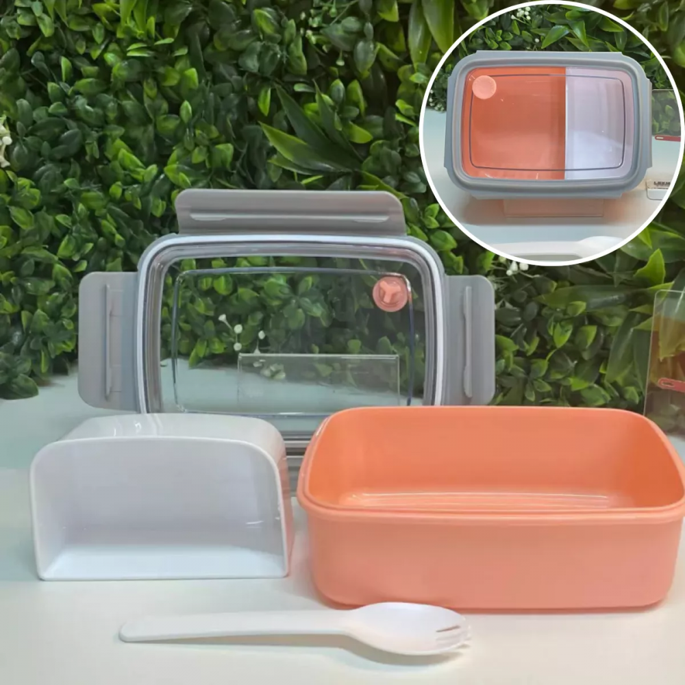 Vasilha de Plastico Tipo Marmita com divisora e Garfo Kapbom 7061 (***DISPONÍVEL SOMENTE NA COR SALMÃO)